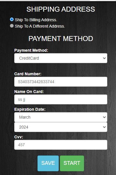 8. Enter the Billing Address details then check the Shipping Address the same as billing, then click on "Payment Method" so it will expand then select payment method to credit card and put credit card CVV in the Bot then Save the Information and Start the bot.